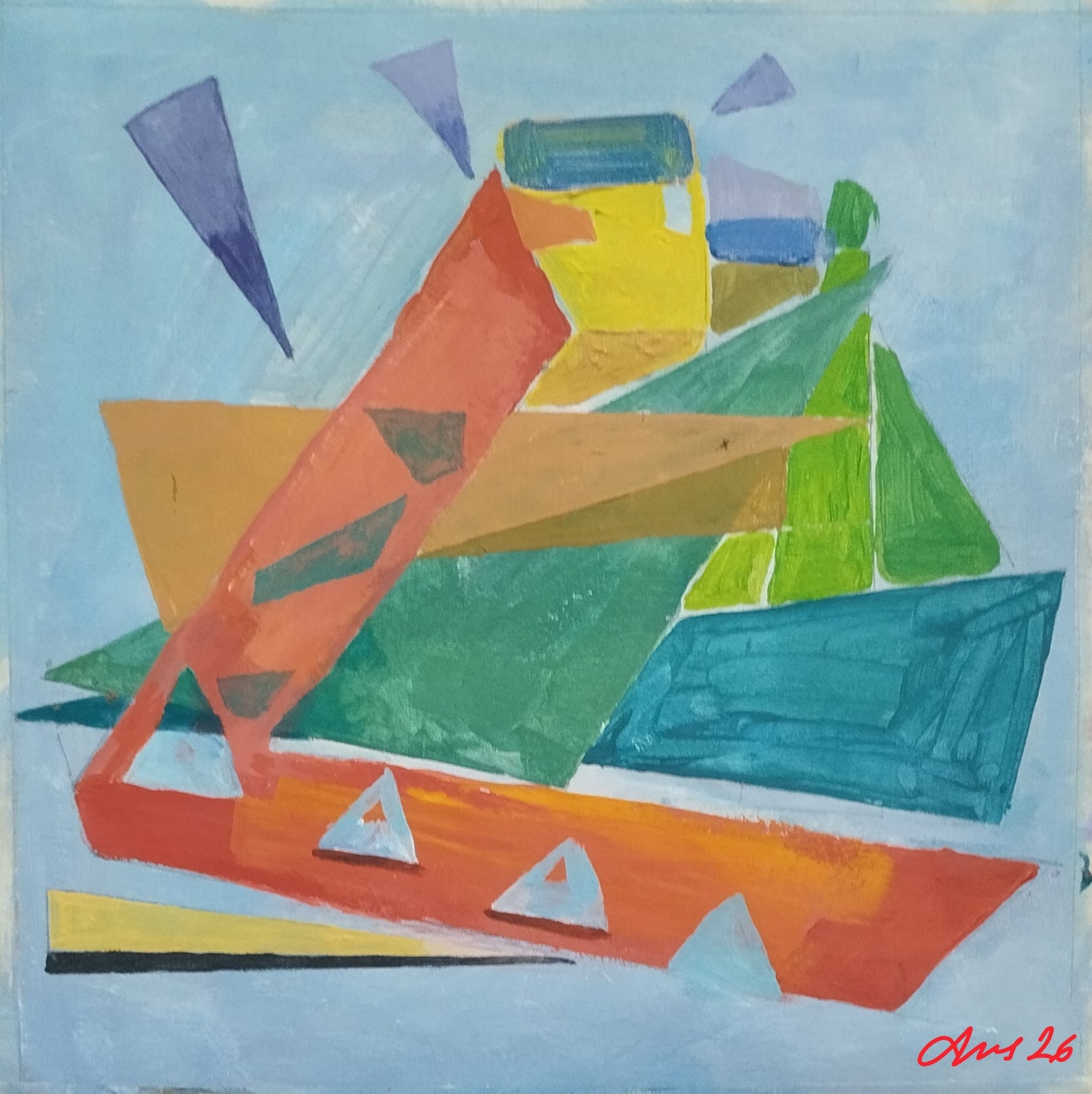 (Como ilustración pinto una “Abstracción geométrica de San Vicente de la Barquera”. ¿Irreconocible ? Lo mismo, mejor hubiera sido tirar de cuitas. Ustedes dirán)